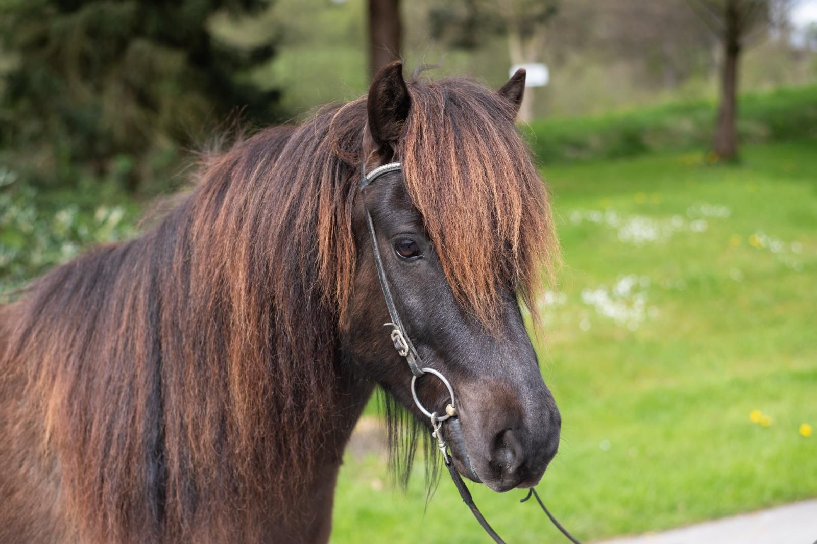 Stígandi, der liebenswerte und freundliche Wallach ist mit seiner langen Mähne und den wachen Augen ein sehr hübsches Pferd.